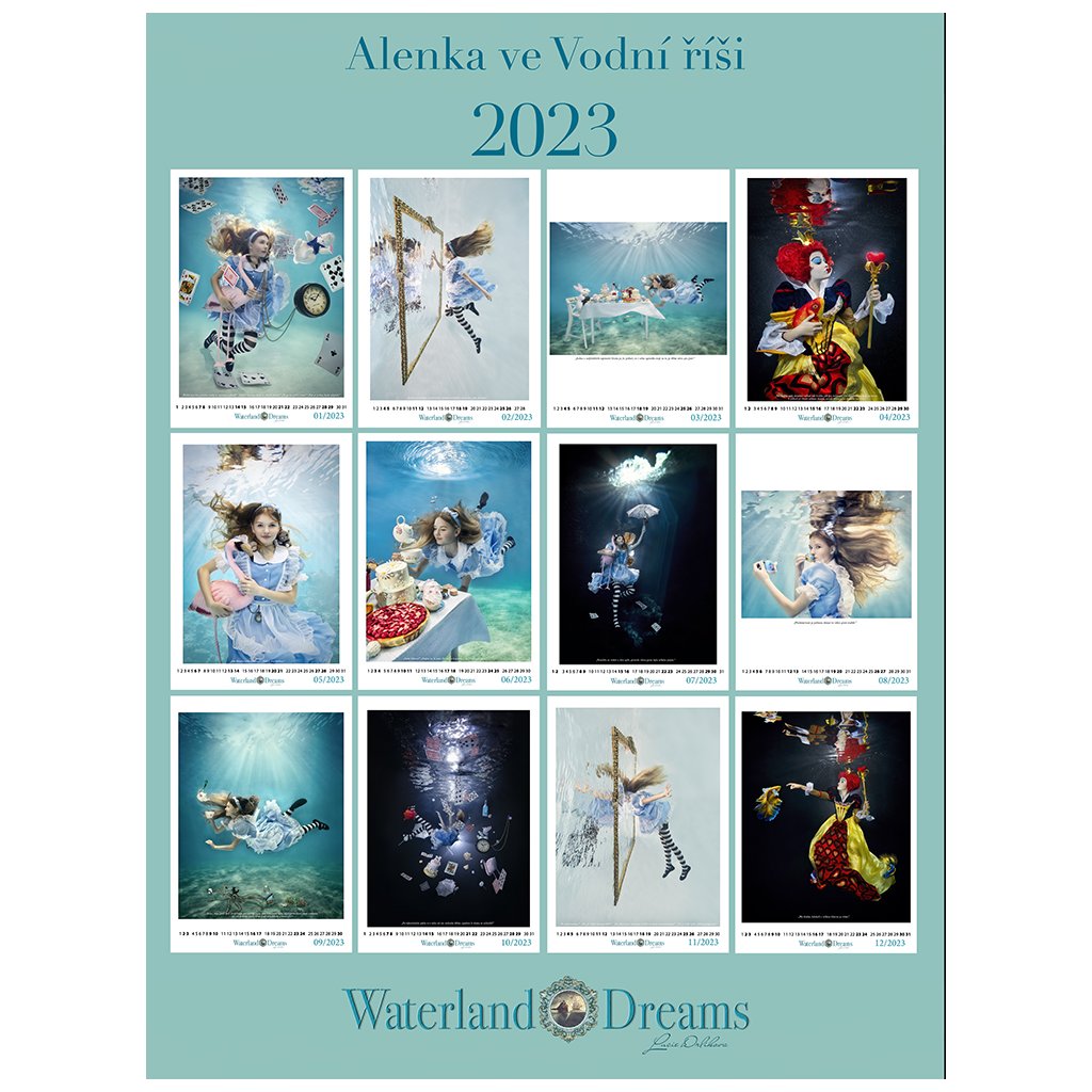 Kalendářem „Alenka ve vodní říši 2023“ pokračuje Lucie Drlíková ve svém projektu „Bylo nebylo ve vodní říši“. Dílo přináší typický rukopis renomované fotografky – 12 originálních snímků, inspirovaných nadčasovým dílem britského spisovatele Lewise Carrolla.